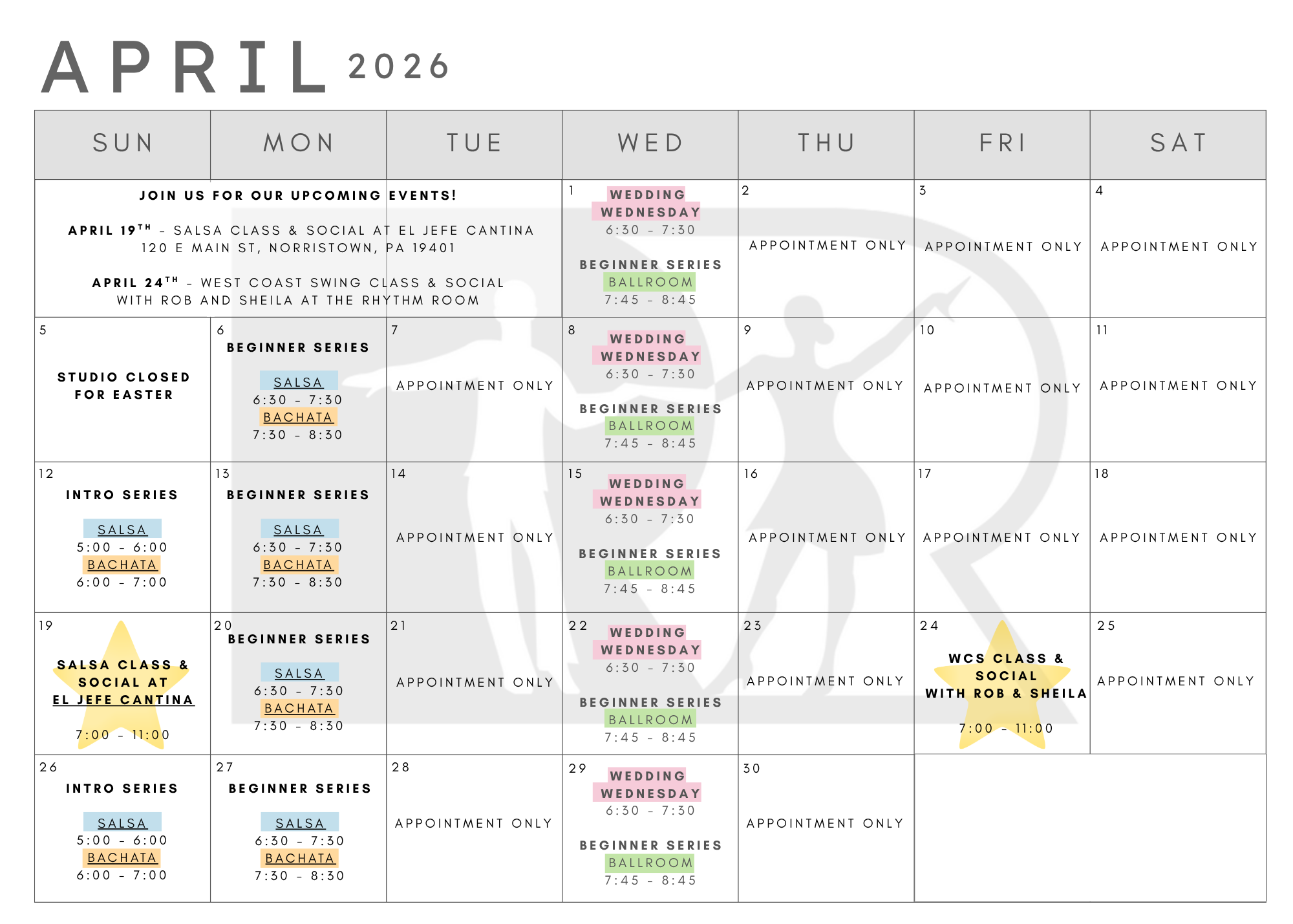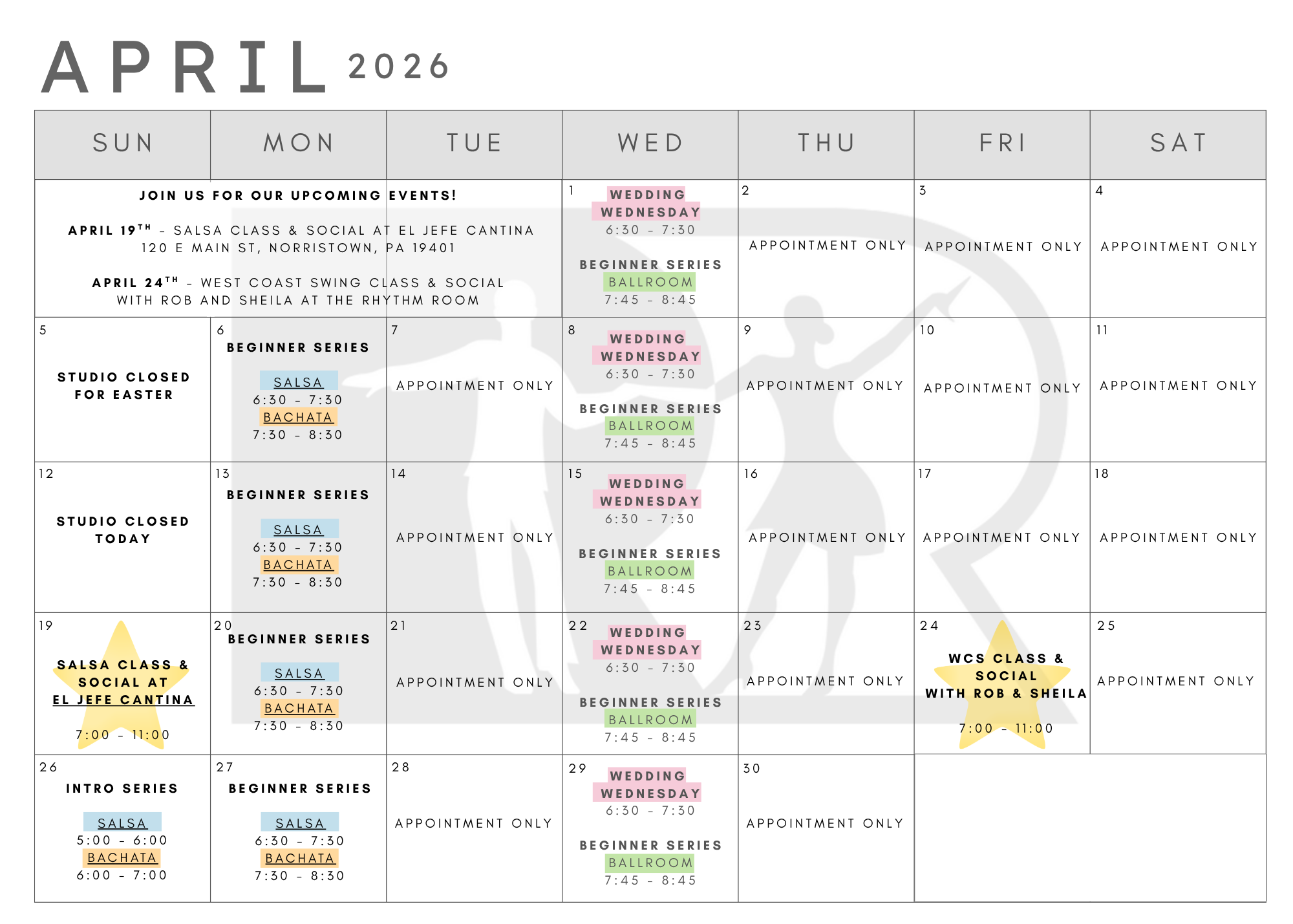 Join the fun! Private lessons, group classes, wedding dancing, and an inviting event space in Norristown’s re-emerging historic district