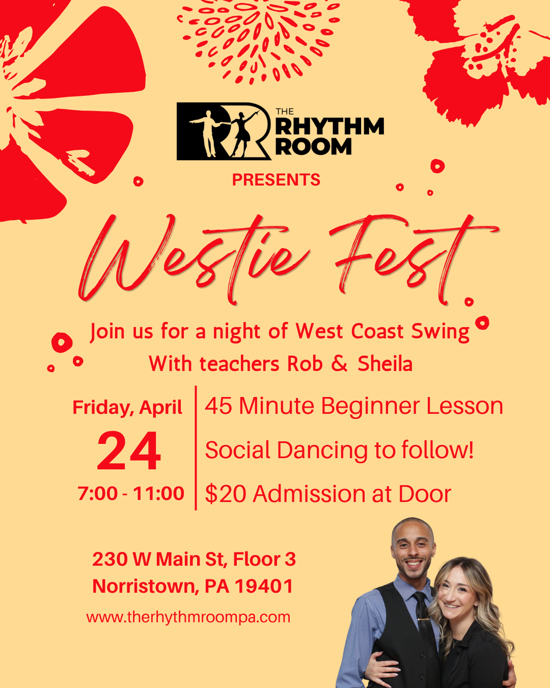 The Rhythm Room presents: Westie Fest! Kick off The Rhythm Room’s first WCS social of the spring season with us and special guests Rob & Sheila!